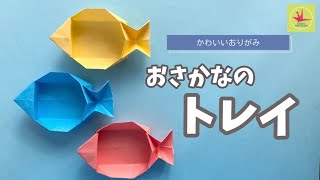 タイトル【かわいい折り紙】おさかなのトレイの作り方 折り方 魚 小物入れ トレー 器 皿 おりがみ origami 簡単